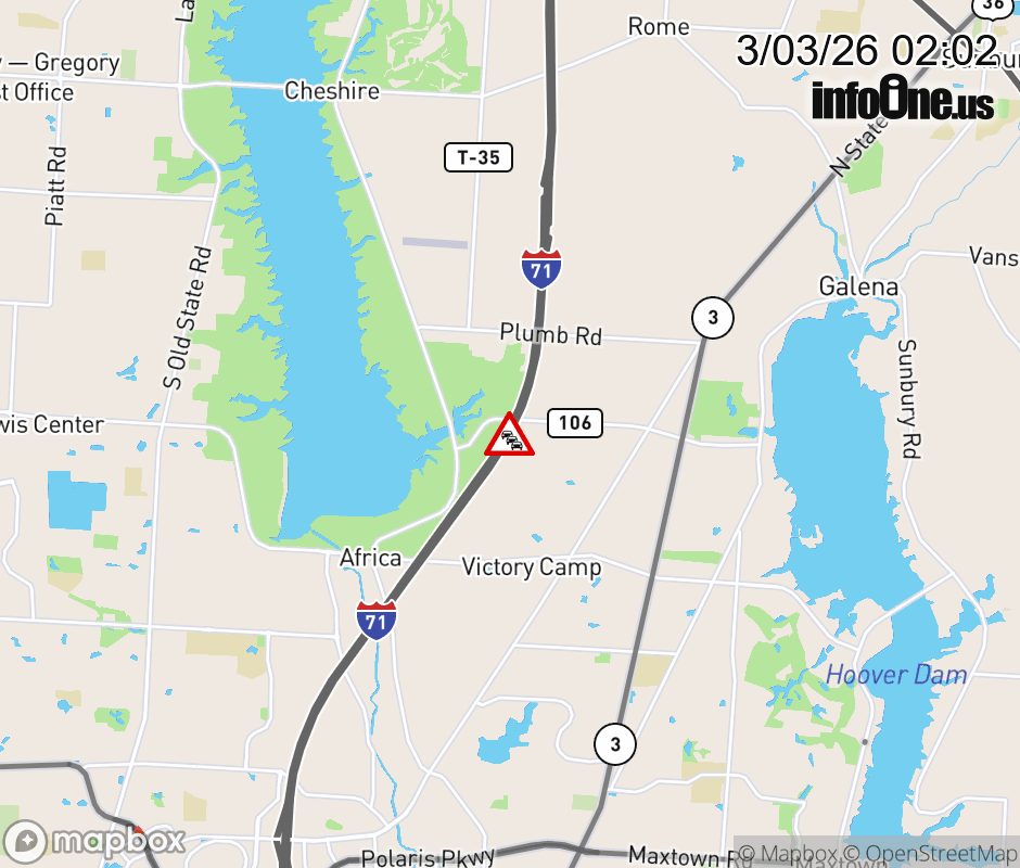 The 2 right lanes are blocked on I-71 North beyond Polaris Pkwy/Gemini Place, due to repairs/maintenance. ![]() |