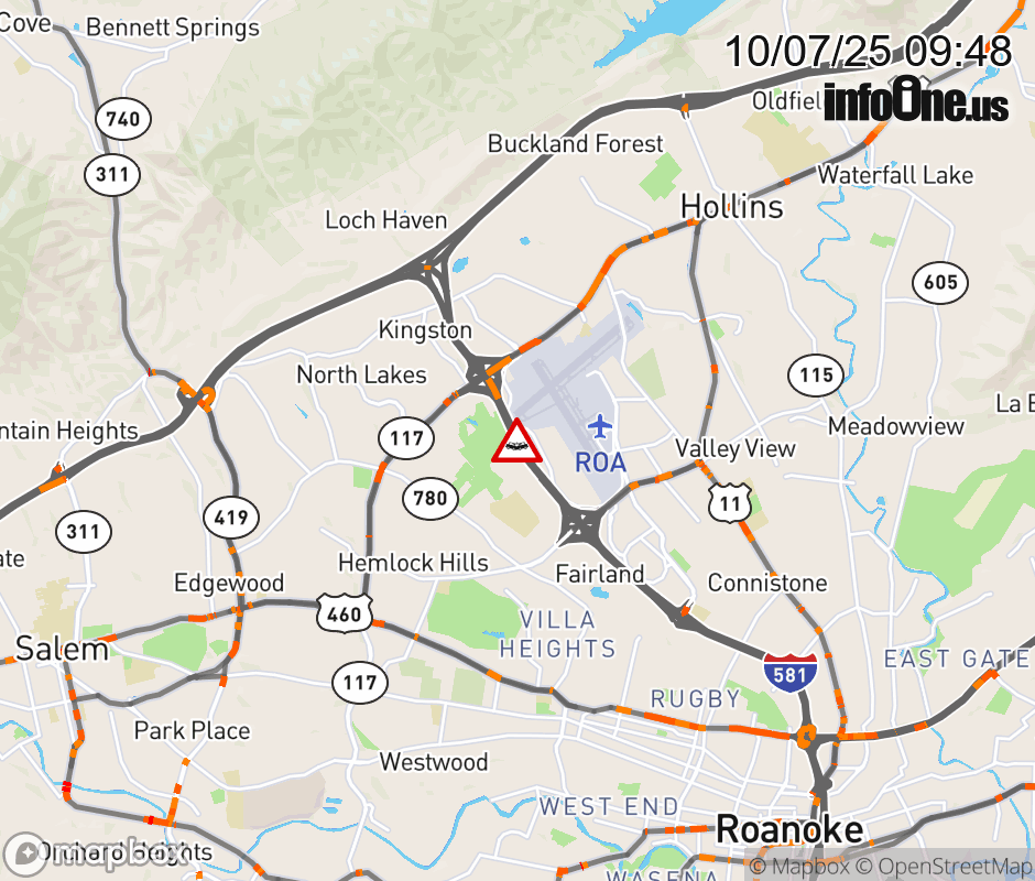 On I-581 at mile marker 4.9 in the County of Roanoke, motorists can expect delays due to a vehicle crash. The north right shoulder is closed. Updated: Tue 10/7/25 9:48 AM EDT ![]() Updated: Tue 10/7/25 9:48 AM EDT |