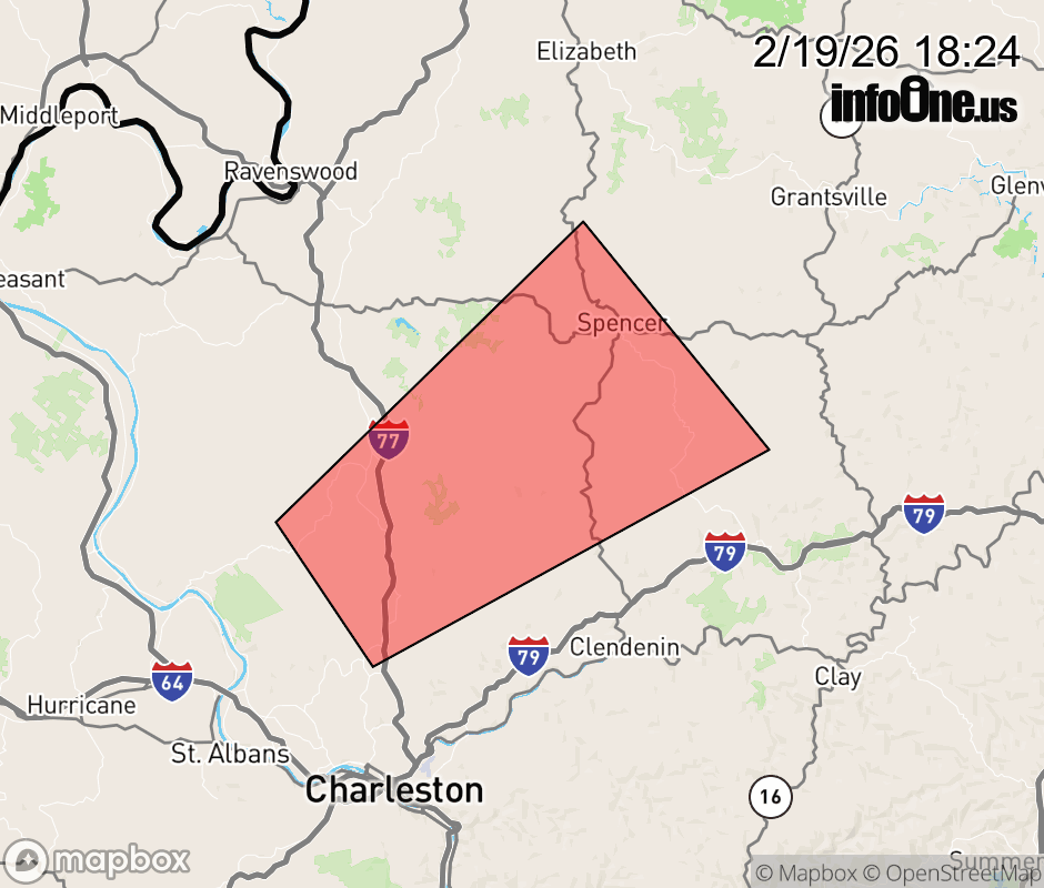 Canceled 2/19/26 6:32 PM Severe Thunderstorm Warning issued February 19 at 6:23PM EST until February 19 at 7:00PM EST by NWS Charleston WV SVRRLX The National Weather Service in Charleston West Virginia has issued a * Severe Thunderstorm Warning for... Northeastern Putnam County in western West Virginia... North central Kanawha County in central West Virginia... Southwestern Roane County in central West Virginia... Southeastern Jackson County in northwestern West Virginia... * Until 700 PM EST. * At 622 PM EST, a severe thunderstorm was located near Sissonville, or 11 miles east of Winfield, moving northeast at 30 mph. HAZARD...60 mph wind gusts and quarter size hail. SOURCE...Radar indicated. IMPACT...Hail damage to vehicles is expected. Expect wind damage to roofs, siding, and trees. * Locations impacted include... Spencer, Sissonville, Kenna, Looneyville, Harmony, Kentuck, Liberty, Gay, Walton, and Gandeeville. This includes Interstate 77 in West Virginia between mile markers 112 and 128. ![]() |