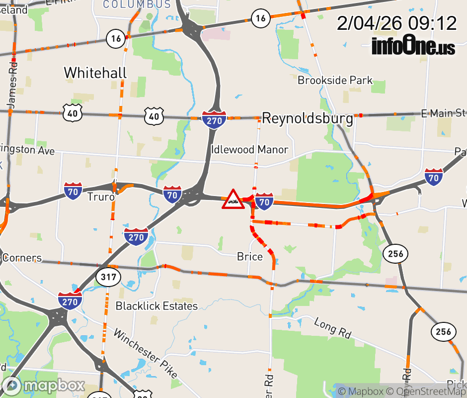 The right lane is blocked on I-70 West beyond Brice Rd, due to a disabled vehicle. Updated: Wed 2/4/26 9:12 AM EST ![]() Updated: Wed 2/4/26 9:12 AM EST |
