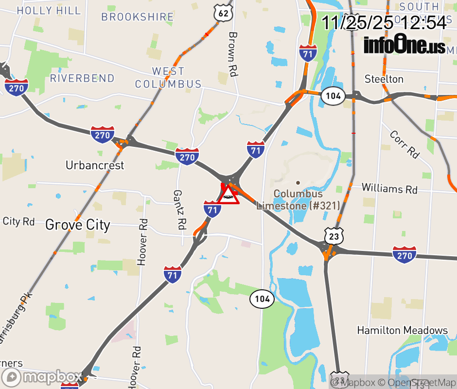 Ramp I-71 North to I-270 East CLOSED because of a crash. Updated: Tue 11/25/25 12:54 PM EST ![]() Updated: Tue 11/25/25 12:54 PM EST |