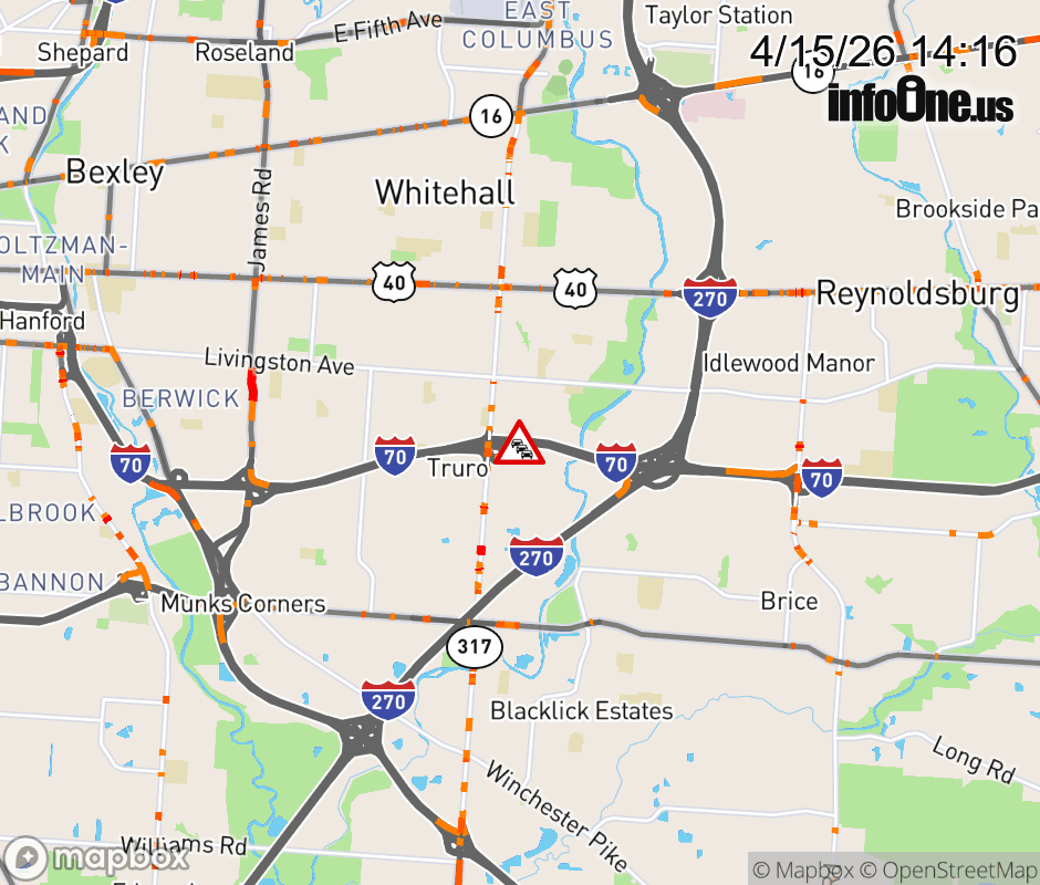 The 2 right lanes are blocked on I-70 East beyond SR-317 North/Hamilton Rd, due to debris on roadway. ![]() |