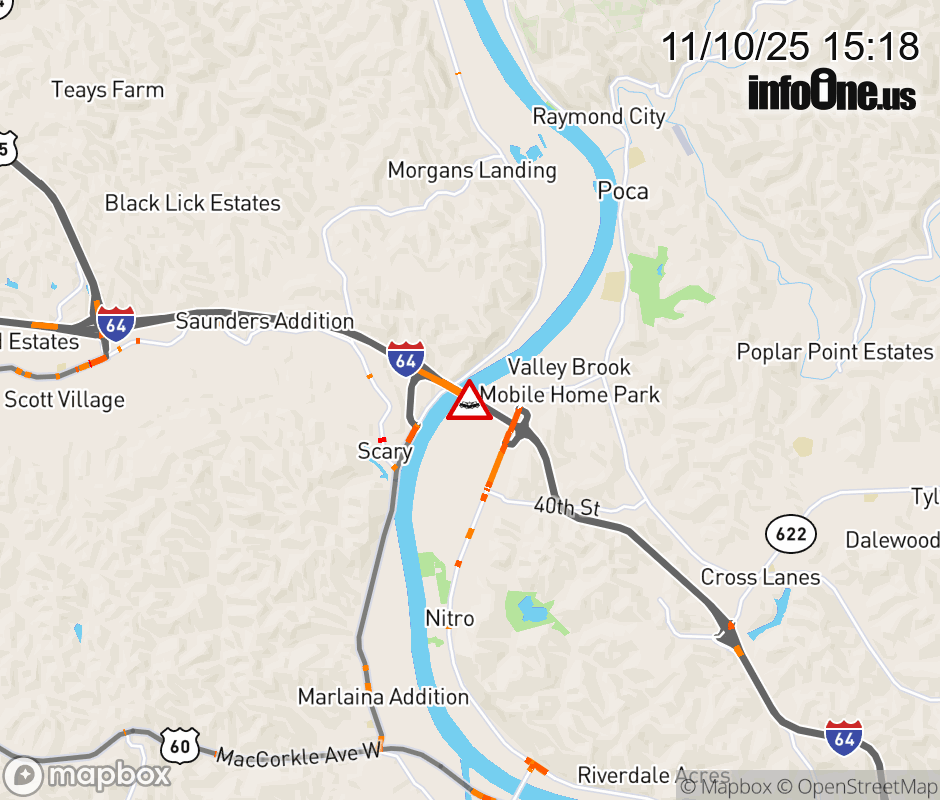 Canceled 11/10/25 6:10 PM Location: I-64 at MM 44.0, WV Accident.
