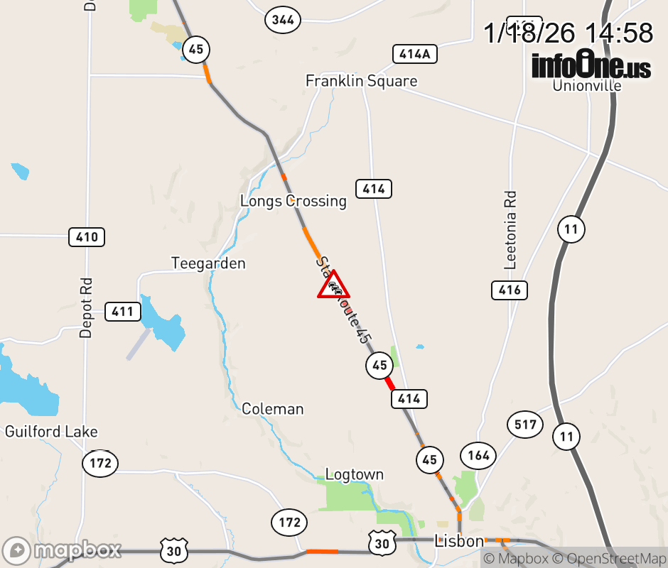 SR-45 CLOSED in BOTH DIRECTIONS from St Jacob-Logtown Rd to Miller Rd (MM: 19), due to structure fire. Use alternate route. ![]() |
