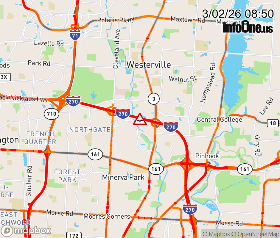 The right lane is blocked on I-270 East at SR-3/Westerville Pike, due to a crash. ![]() |