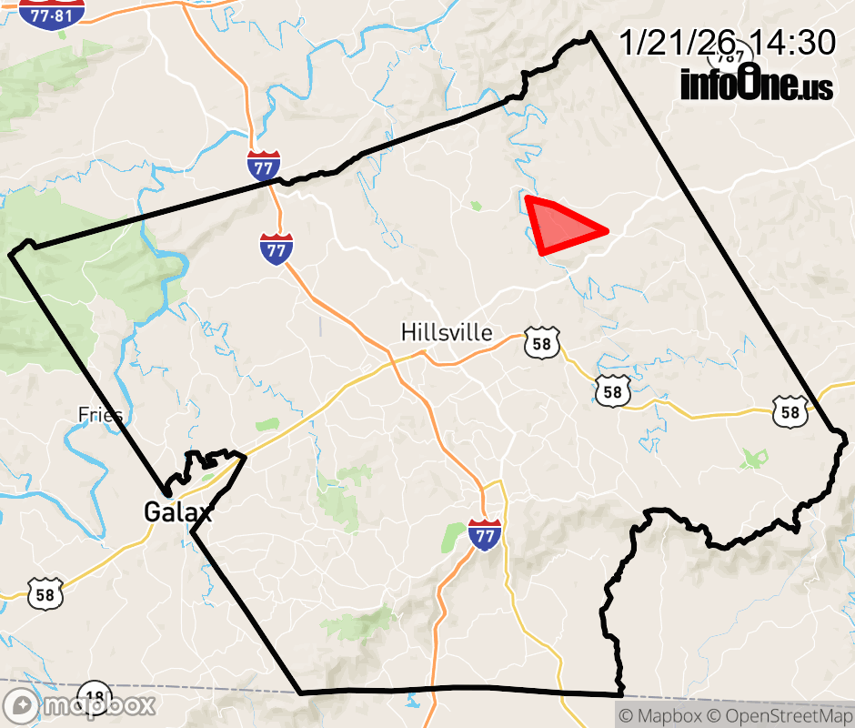 Canceled 1/21/26 2:41 PM Carroll County has 1 power outage affecting 47 customers. Appalachian Power 47 without power Hillsville: Customers affected: 43 (1%) Estimated repair: Wed 6:30 PM Dugspur: Customers affected: <5 (< 1%) Estimated repair: Wed 6:30 PM Updated: Wed 1/21/26 2:30 PM EST ![]() Updated: Wed 1/21/26 2:30 PM EST |