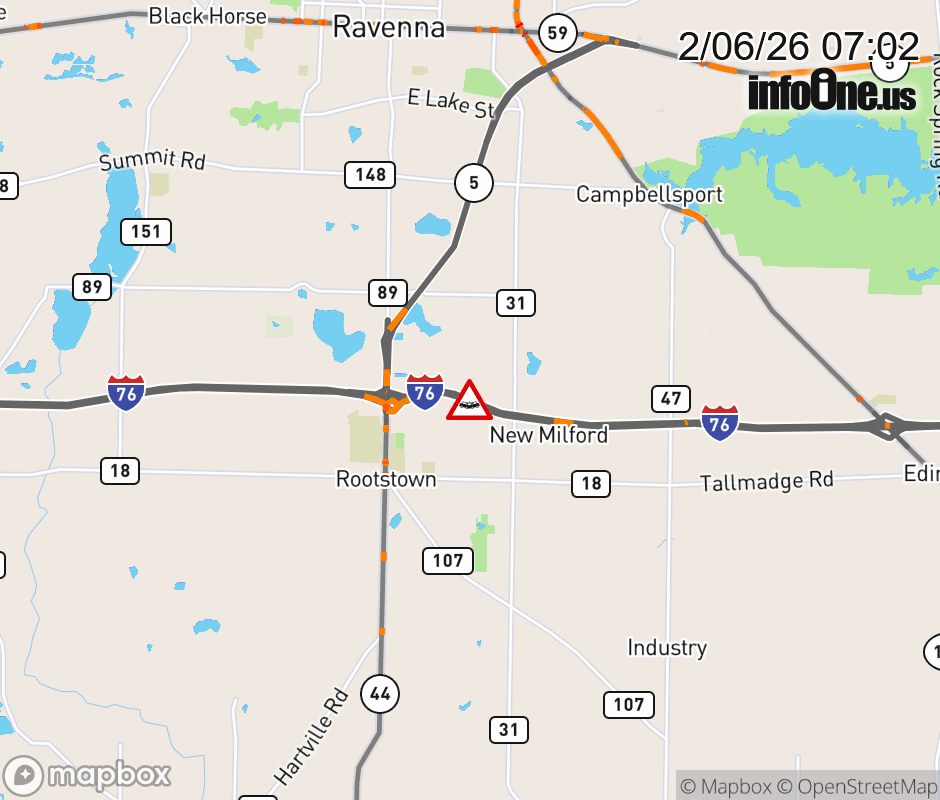 Expect lane closures on I-76 West beyond SR-14/Alliance/Ravenna, due to a crash. ![]() |