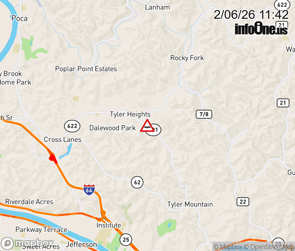 Vehicle Crash on WV-622 (Rocky Fork Rd) & WV-622 (Big Tyler Rd) in Cross Lanes. ![]() |