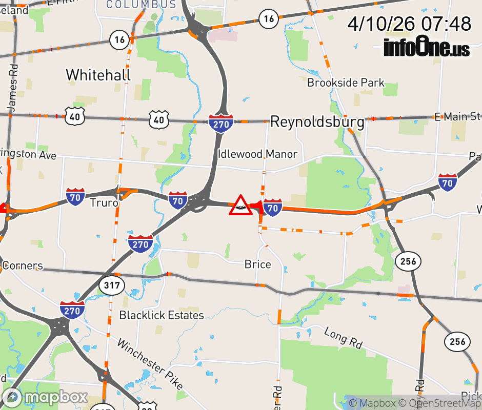 The right lane is blocked on I-70 West beyond Brice Rd, due to a crash. ![]() |