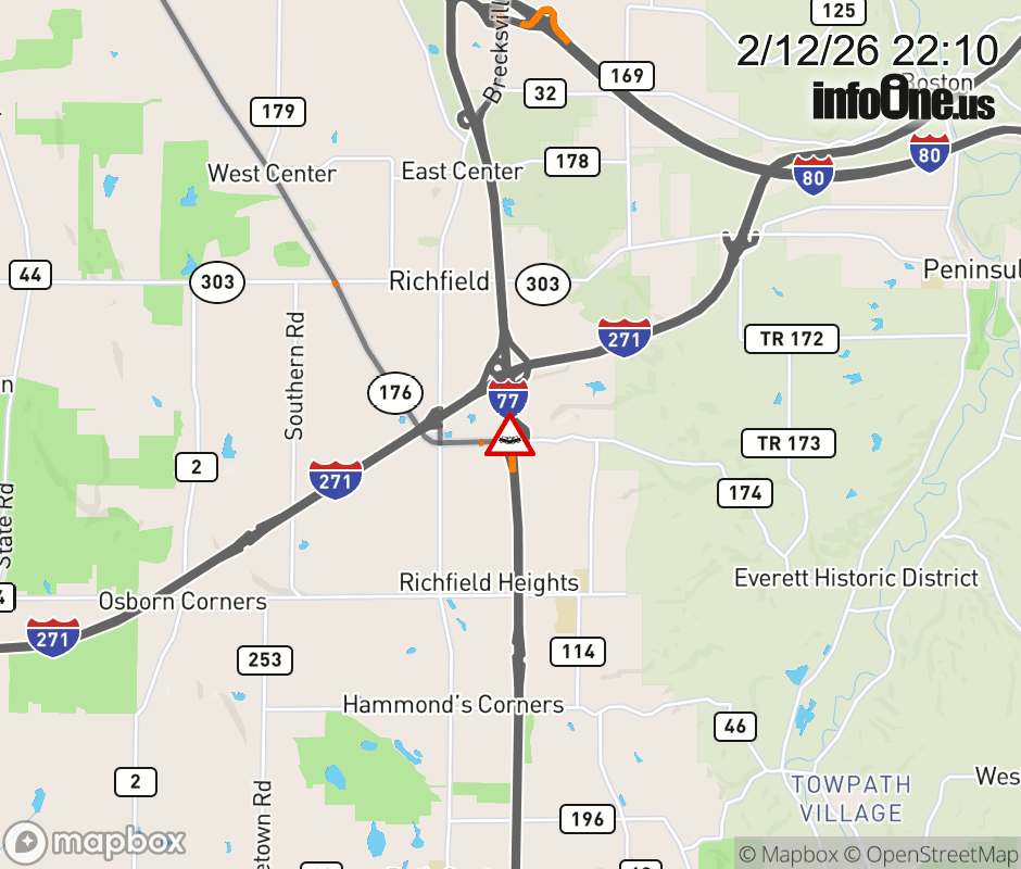 The left lane is blocked on I-77 South beyond SR-176, due to a crash. Updated: Thu 2/12/26 10:10 PM EST ![]() Updated: Thu 2/12/26 10:10 PM EST |