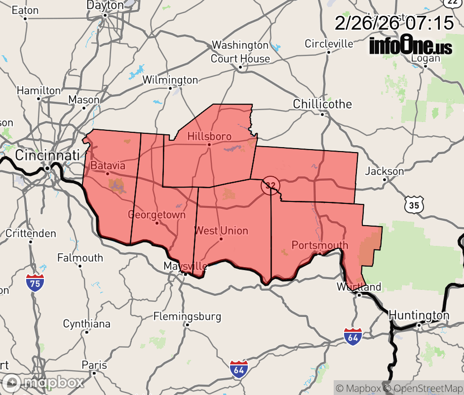 Canceled 2/26/26 9:30 AM Special Weather Statement issued February 26 at 7:13AM EST by NWS Wilmington OH Periods of snow will continue through mid morning. Snowfall will generally remain under an inch, with accumulations mainly on grassy surfaces. However, snow may eventually stick on roads, especially on bridges or elevated surfaces. This could lead to hazardous travel conditions during the morning commute. If driving this morning, allow extra time, and leave extra space between vehicles. ![]() |