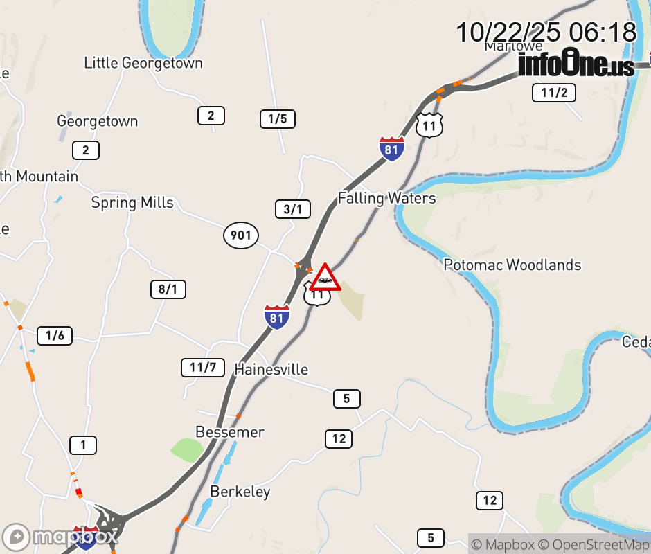 Canceled 10/22/25 8:32 AM Location: US-11, WV Accident.