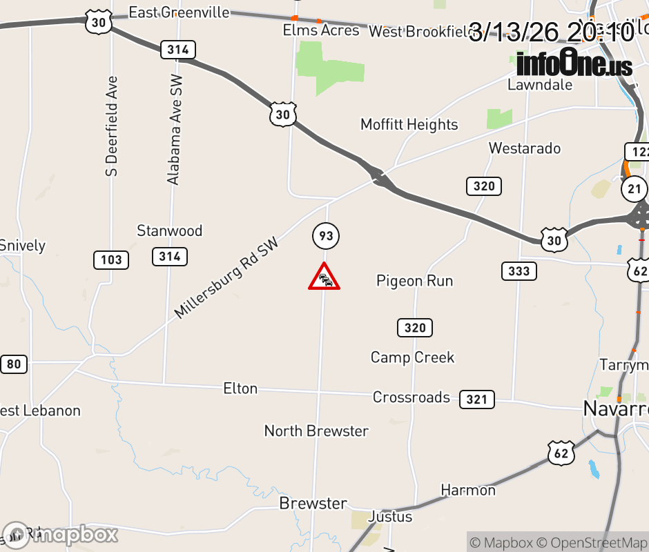 SR-93 CLOSED in BOTH DIRECTIONS at Sarbaugh St Sw (MM: 7.8), due to utility lines debris on roadway. Use alternate route. SR-93 CLOSED in BOTH DIRECTIONS at Sarbaugh St Sw (MM: 7.8), due to utility lines debris on roadway. Use alternate route. ![]() |