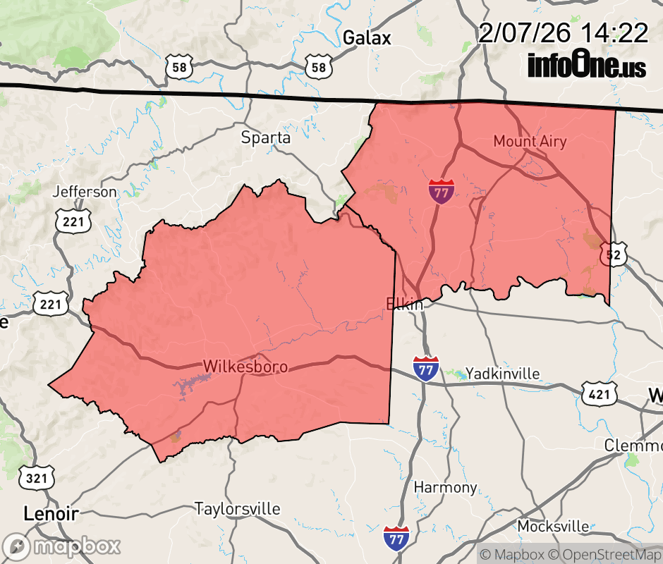 Canceled 2/7/26 6:24 PM Wind Advisory issued February 7 at 2:21PM EST until February 7 at 7:00PM EST by NWS Blacksburg VA * WHAT... Northwest winds 10 to 20 mph with gusts up to 35 mph, except up to 50 mph closer to the Blue Ridge. * WHERE... Surry and Wilkes Counties. * WHEN... Until 7 PM EST this evening. * IMPACTS... Gusty winds will blow around unsecured objects. Tree limbs could be blown down and a few power outages may result. ![]() |