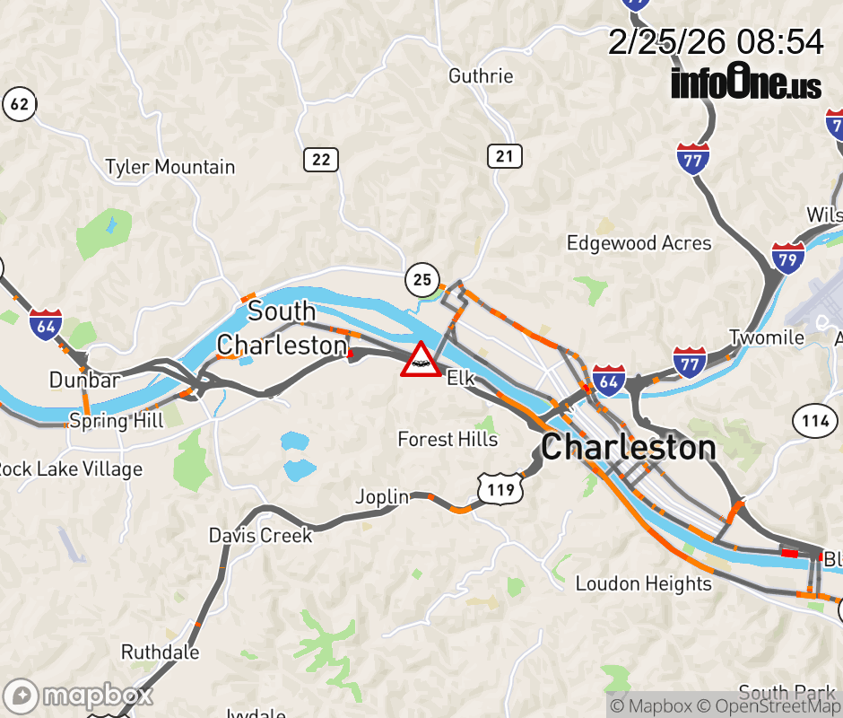 Vehicle Crash on US-60W MacCorkle Ave off Patrick St Bridge Exit. ![]() |