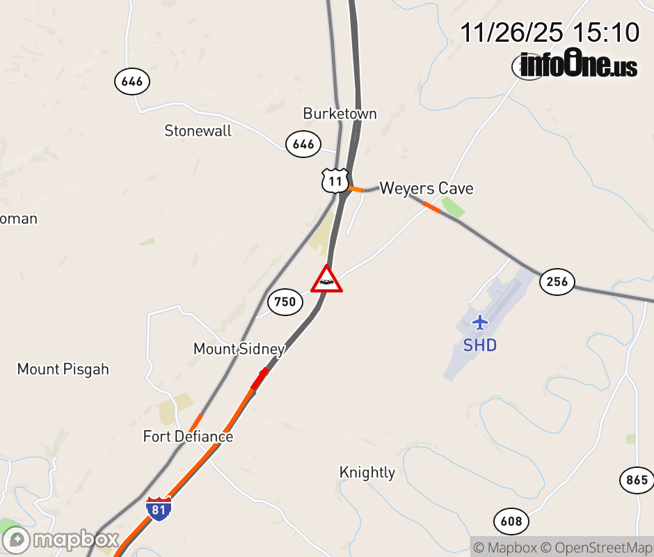 On I-81 at mile marker 234 in the County of Augusta, motorists can expect delays due to a multi-vehicle crash. The south right shoulder is closed. Updated: Wed 11/26/25 3:10 PM EST ![]() Updated: Wed 11/26/25 3:10 PM EST |