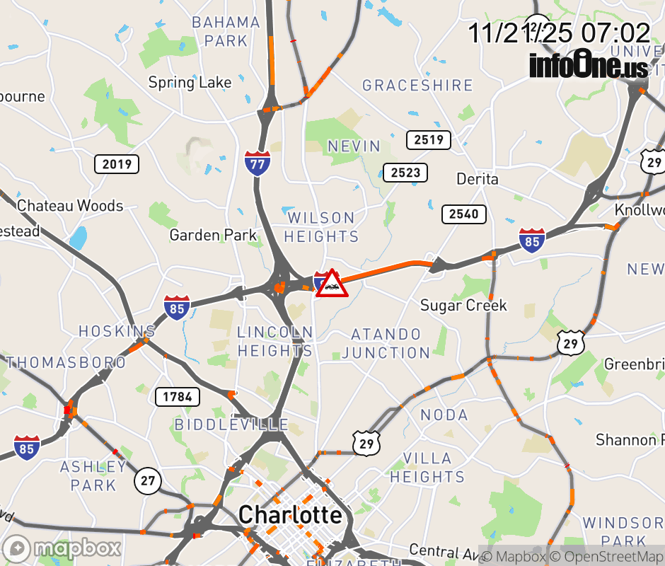 The right center lane is closed at Exit 39 (Statesville Rd/Ave). ![]() |