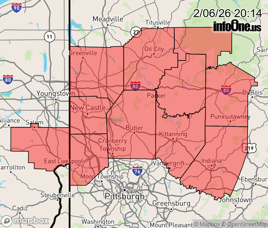Canceled 2/6/26 9:30 PM Special Weather Statement issued February 6 at 8:12PM EST by NWS Pittsburgh PA A arctic cold front will drop across the region during the late evening hours. The front will be accompanied by bands of snow showers, some of which will be moderate to briefly heavy at times. Visibilities of one-half mile or less and wind gusts to 35 MPH are possible in the heavier snow showers. A quick accumulation of one-half to one inch will be possible, especially on untreated surfaces. Snow Squall Warnings may be necessary for the heaviest showers that drop visibility to one- quarter mile or less in heavy, blowing snow. Motorists are urged to use caution while driving this evening. If you encounter heavy snow and very low visibility, slow down and increase the distance between your car and those that surround you. Consider delaying travel until the heavy snow showers have passed. ![]() |