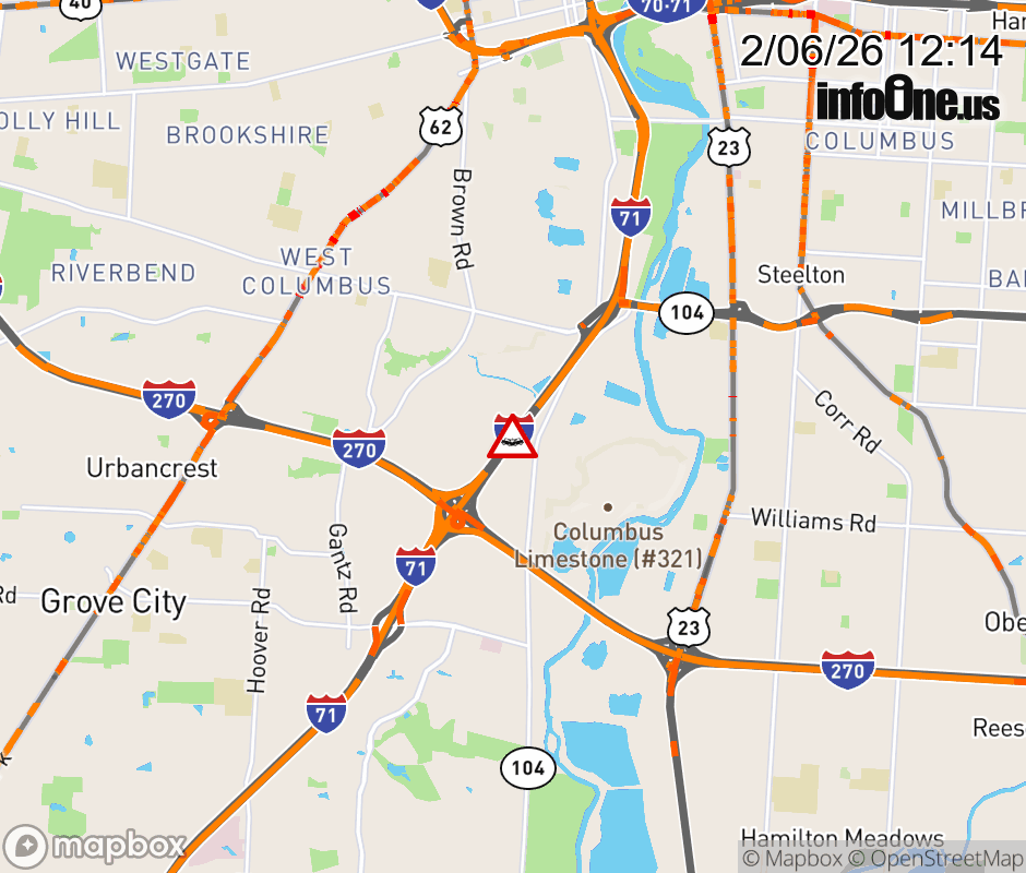 The right lane is blocked on I-71 South beyond SR-104/Frank Rd, due to a crash. ![]() |