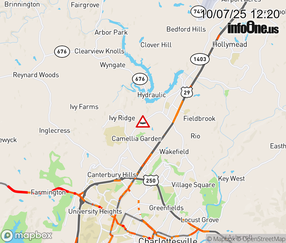 On Rt. 631 in the County of Albemarle, in the vicinity of Earlysville Rd; Hydraulic Rd; Townwood Dr; Rt. 743N/S (Albemarle County), motorists can expect delays due to a vehicle crash. The south left shoulder and left lane are closed. ![]() |