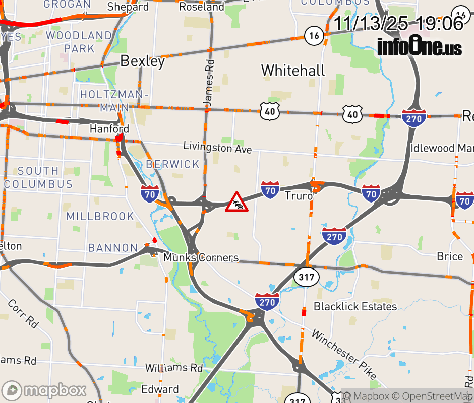 The right lane is blocked on I-70 West beyond SR-317/Hamilton Rd, due to a police incident. ![]() |