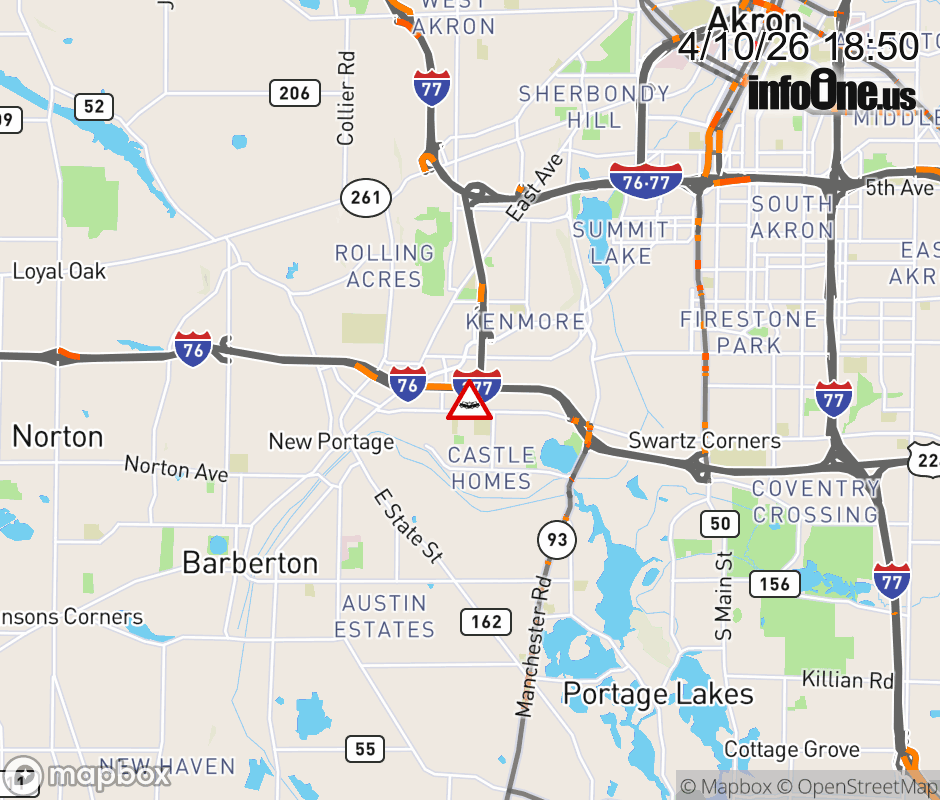 Ramp I-76/US224 East to I-76 East CLOSED because of a crash. Updated: Fri 4/10/26 6:50 PM EDT ![]() Updated: Fri 4/10/26 6:50 PM EDT |