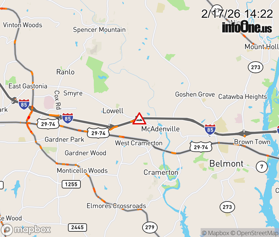The left lane is closed past Exit 23 (McAdenville Rd). ![]() |