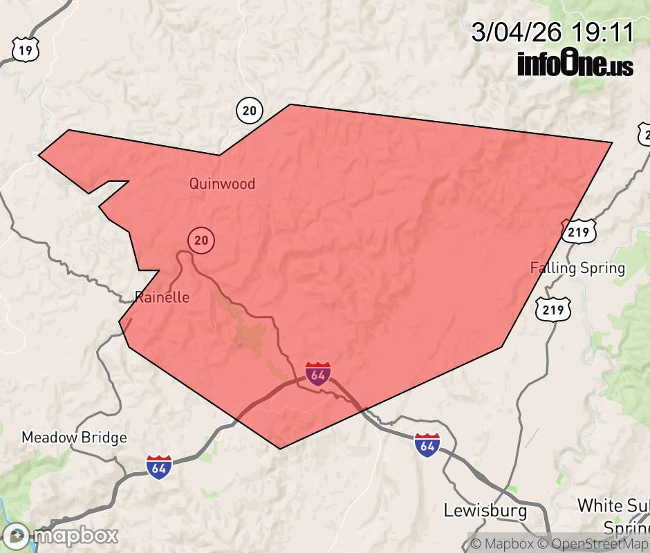 Canceled 3/4/26 7:45 PM Special Weather Statement issued March 4 at 7:10PM EST by NWS Blacksburg VA At 710 PM EST, Doppler radar was tracking a strong thunderstorm over Bingham, or near Rainelle, moving east at 30 mph. HAZARD...Wind gusts up to 40 mph and pea size hail. SOURCE...Radar indicated. IMPACT...Gusty winds could knock down tree limbs and blow around unsecured objects. Locations impacted include... Rainelle... Rupert... Quinwood... Bingham... Trout... Leonard... and Williamsburg. ![]() |