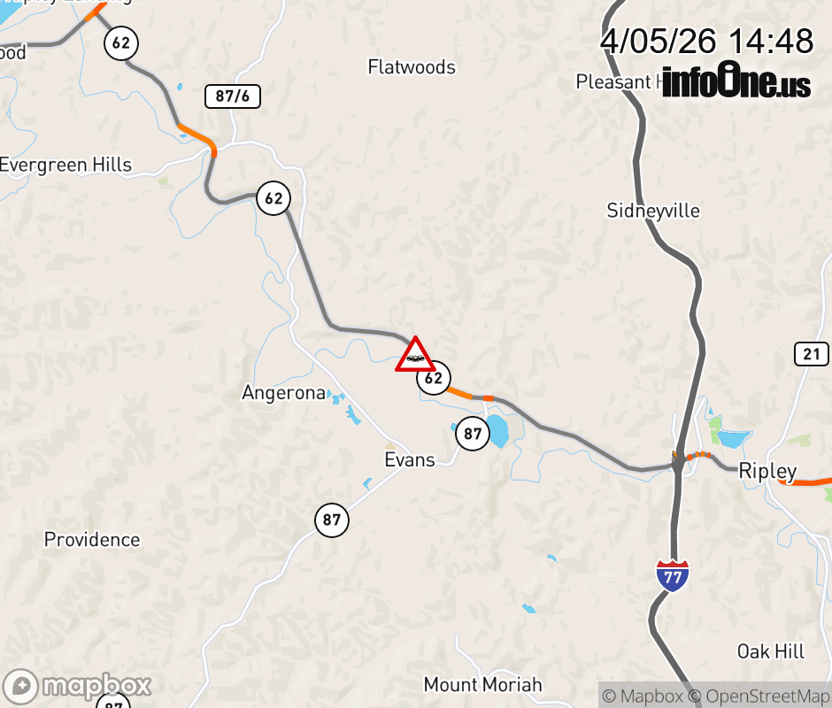 Vehicle Crash on WV-62 (Area of 3991 Ripley Rd) in Ripley. Comments:Area of The Quarter Store. Updated: Sun 4/5/26 2:48 PM EDT ![]() Updated: Sun 4/5/26 2:48 PM EDT |