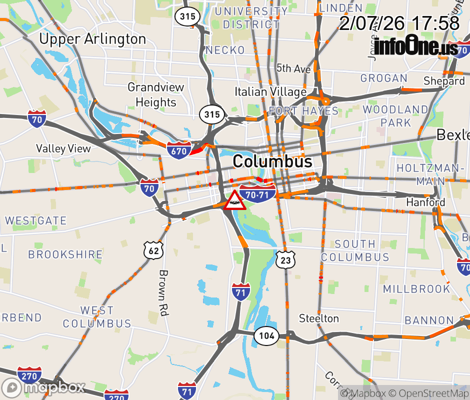 The right lane is blocked on I-70 West at Rich St/Town St, due to a crash. ![]() |