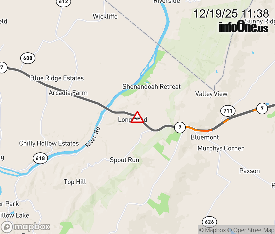 On VA-7 in the County of Clarke, in the vicinity of Pine Grove Rd; Xver; Rt. 679E/W (Clarke County), motorists can expect delays due to a vehicle crash. The west right lane and right shoulder are closed. ![]() |