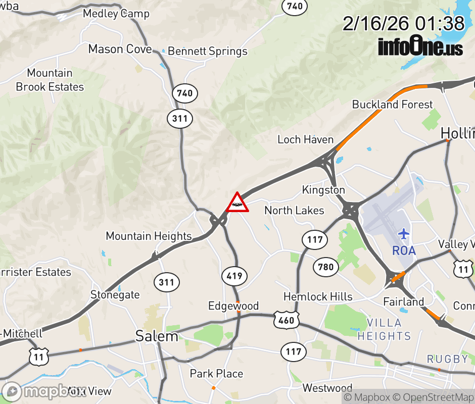 On I-81 at mile marker 142 in the County of Roanoke, motorists can expect delays due to a vehicle crash. The north right shoulder is closed. ![]() |