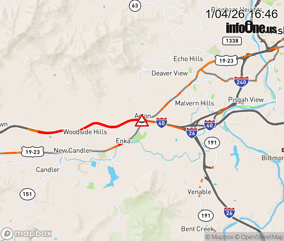 The right shoulder is closed one mile past Exit 44 ( US-74 ALT). Updated: Sun 1/4/26 4:46 PM EST ![]() Updated: Sun 1/4/26 4:46 PM EST |