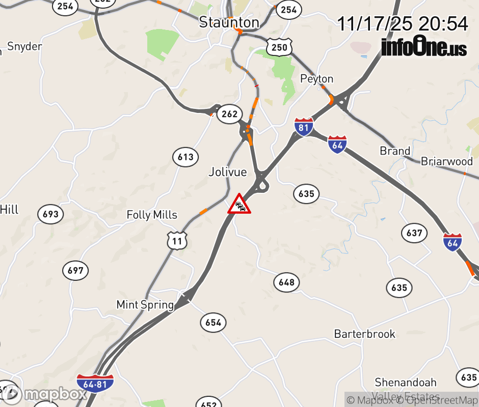 On I-81 South at mile marker 220 in the County of Augusta, motorists can expect delays due to other security/police activity. Updated: Mon 11/17/25 8:54 PM EST ![]() Updated: Mon 11/17/25 8:54 PM EST |
