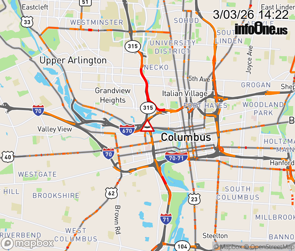 All lanes are closed on SR-315 North at I-670 East, due to a crash. ![]() |