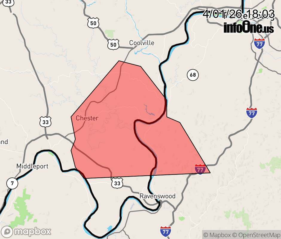 Canceled 4/1/26 6:13 PM Severe Thunderstorm Warning issued April 1 at 6:02PM EDT until April 1 at 6:15PM EDT by NWS Charleston WV At 602 PM EDT, a severe thunderstorm was located near Racine, moving east at 30 mph. HAZARD...Half dollar size hail. SOURCE...Radar indicated. IMPACT...Damage to vehicles is expected. Locations impacted include... Forked Run State Park, Tuppers Plains, Chester, Syracuse, Reedsville, and Portland. ![]() |