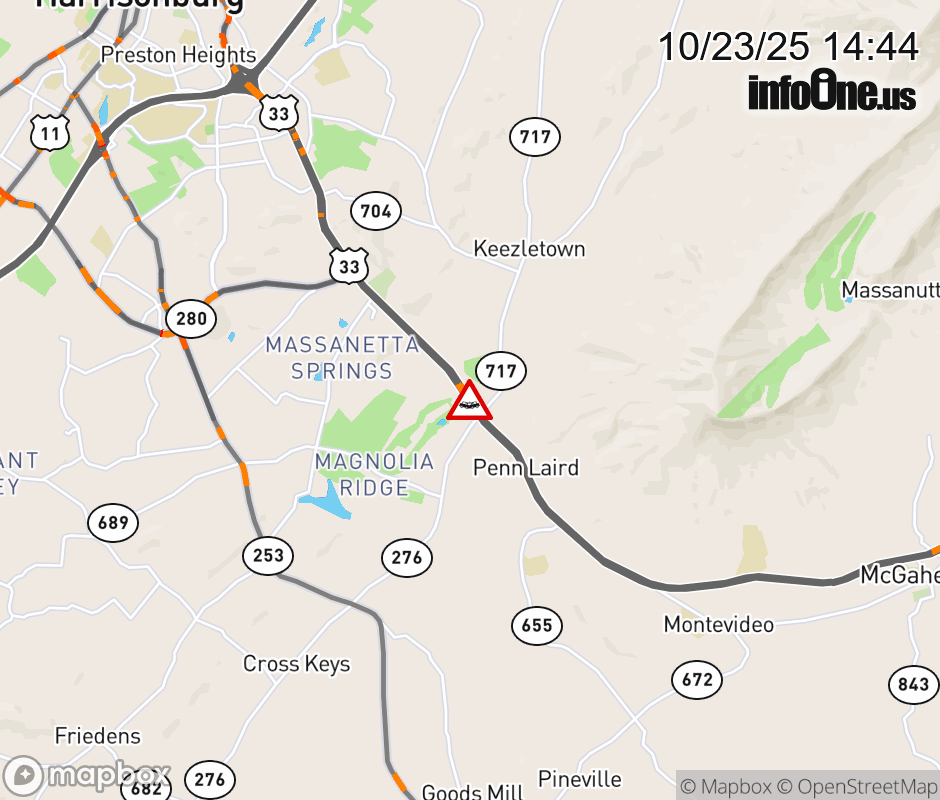 On US-33 in the County of Rockingham, in the vicinity of Indian Trail Rd; Rt. 620N/S (Rockingham County), motorists can expect delays due to a vehicle crash. The west left shoulder and left lane are closed. ![]() |