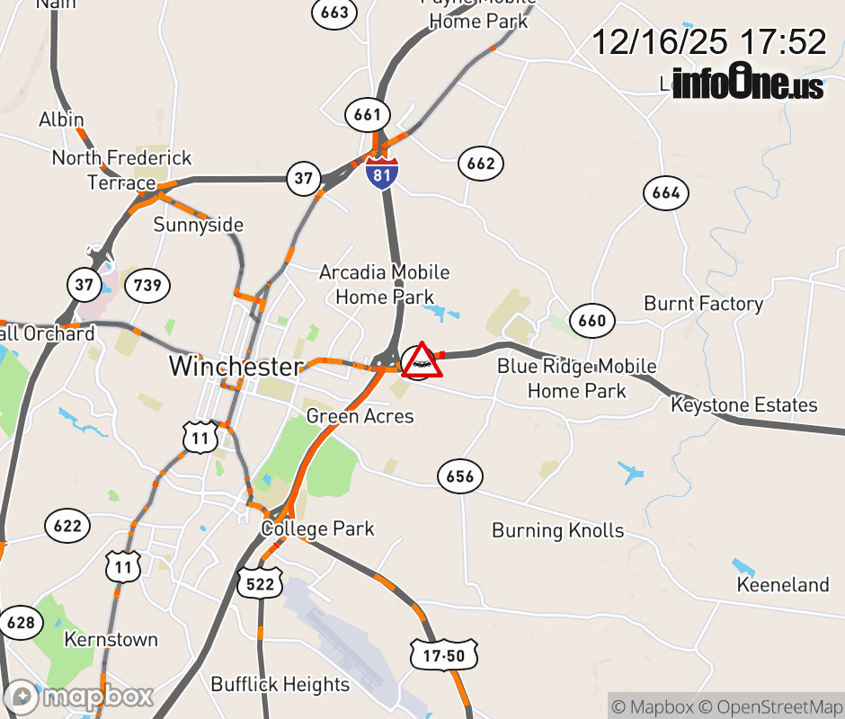 On VA-7 in the County of Frederick, in the vicinity of the ramp to I-81N, motorists can expect delays due to a vehicle crash. The west left shoulder and left lane are closed. ![]() |