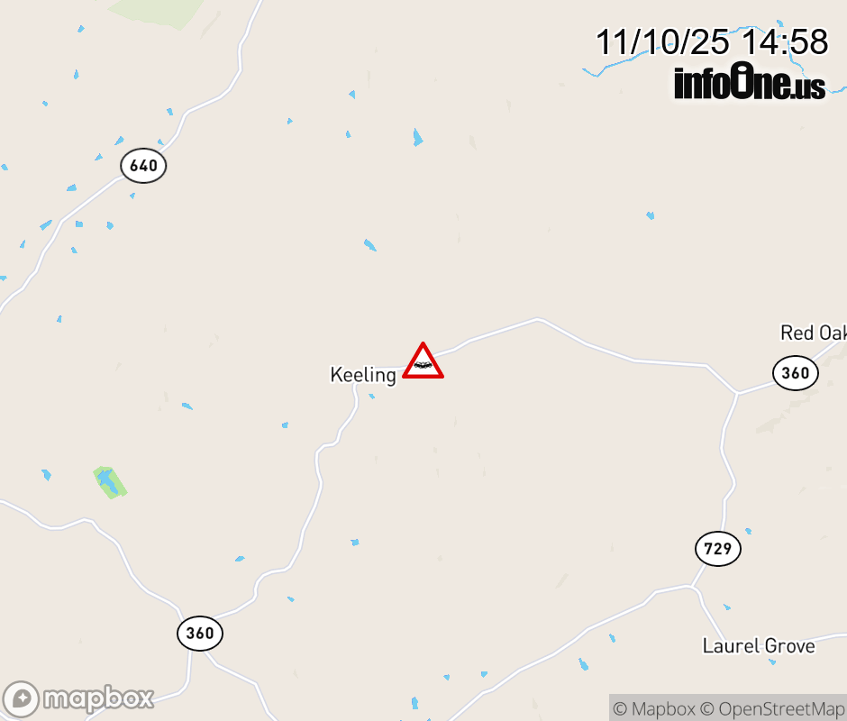 On VA-360 in the County of Pittsylvania, in the vicinity of Oak Grove Rd; Rt. 713N/S (Pittsylvania County), motorists can expect delays due to a vehicle crash. All west lanes are closed. ![]() |