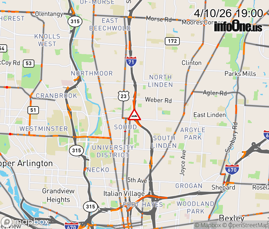 The left lane is blocked on I-71 South at Hudson St, due to a disabled vehicle. ![]() |