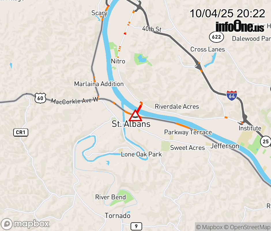 In Kanawha County there is a Vehicle Crash on US 60 (3rd St & MacCorkle Ave). Updated: Sat 10/4/25 8:22 PM EDT ![]() Updated: Sat 10/4/25 8:22 PM EDT |