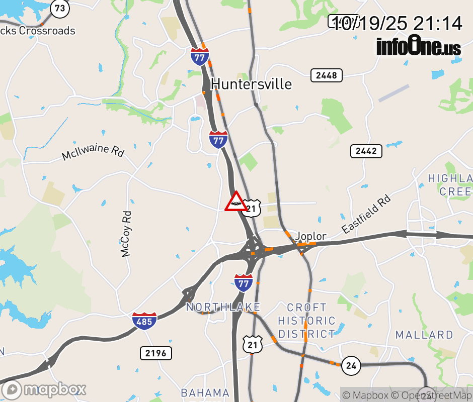 Canceled 10/19/25 9:44 PM Location: I-77N at MM 21.4, NC Vehicle Crash.