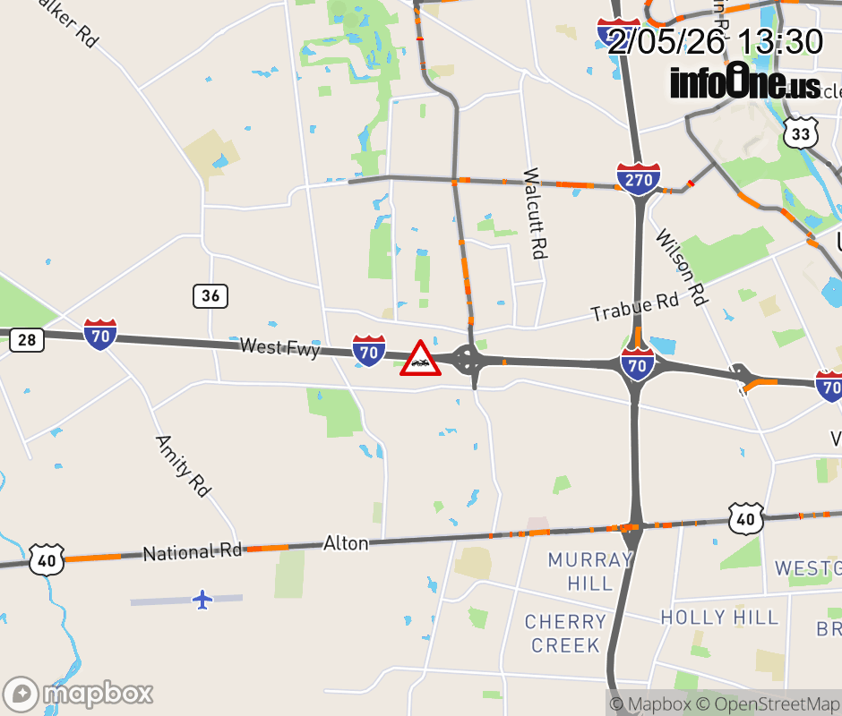 The right lane is blocked on I-70 East beyond SR-142/Plain City, due to a disabled vehicle. ![]() |