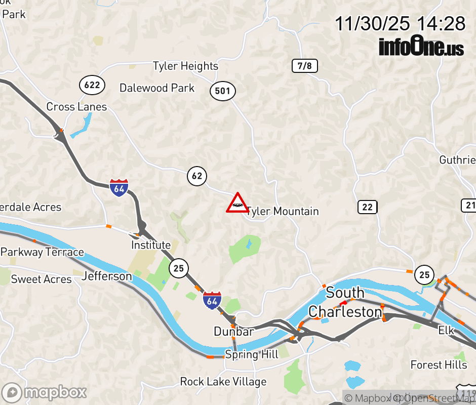 Vehicle Crash on WV-62 (4500 BLK of Washington St W) in Tyler Mountain. ![]() |