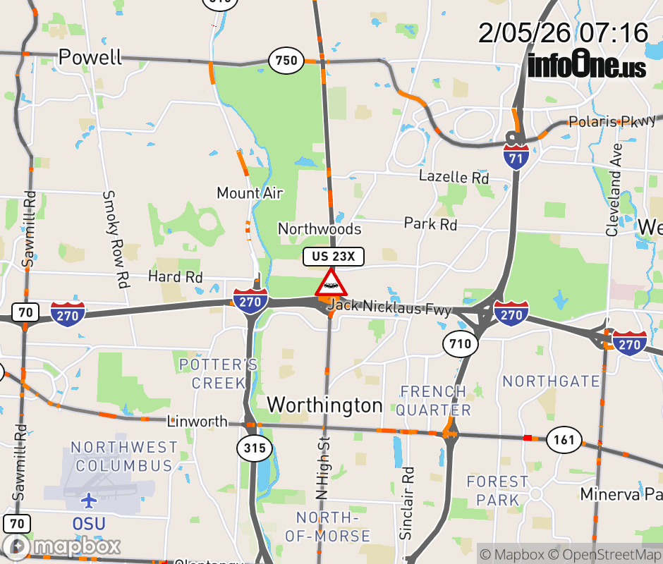 The right lane is blocked on US-23 North Express at N High St, due to a crash. ![]() |