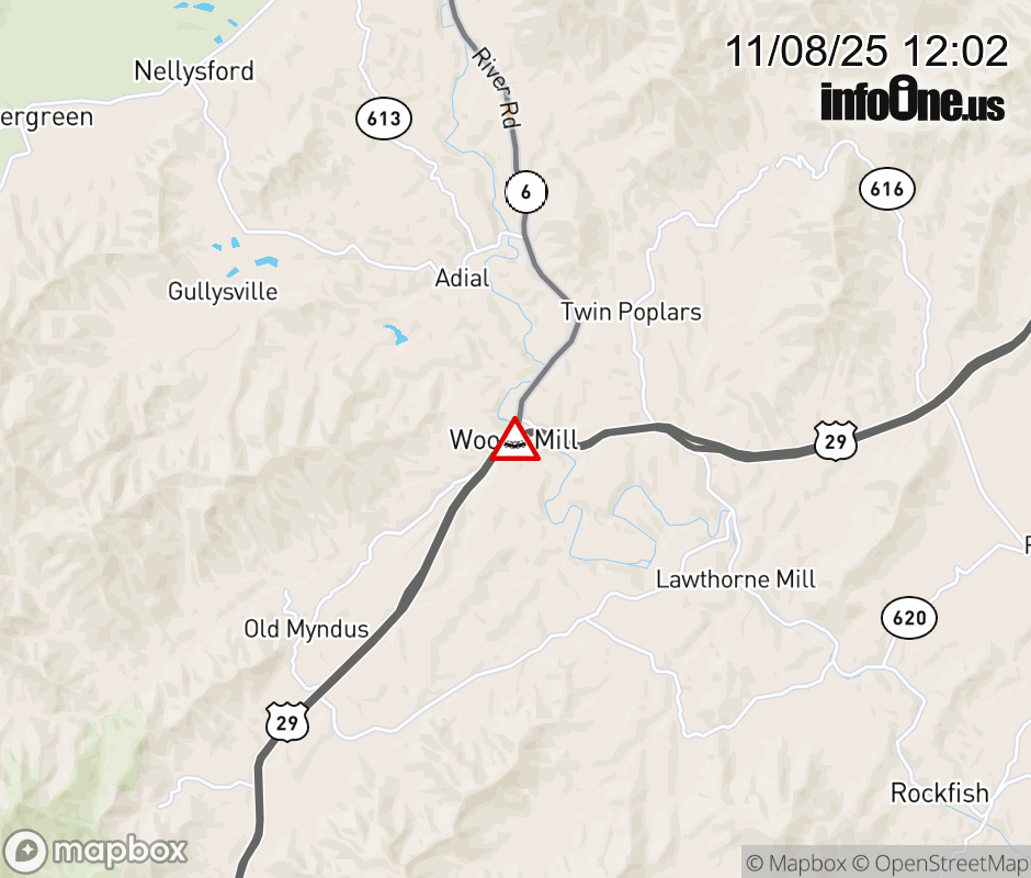 On US-29 in the County of Nelson, in the vicinity of /W; VA-6E, motorists can expect delays due to a vehicle crash. The south right lane and right shoulder are closed. Updated: Sat 11/8/25 12:02 PM EST ![]() Updated: Sat 11/8/25 12:02 PM EST |
