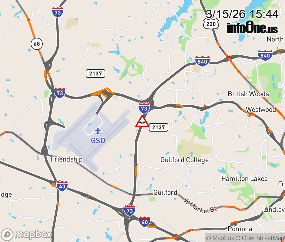 The right shoulder is closed past Exit 3A (I-73). ![]() |