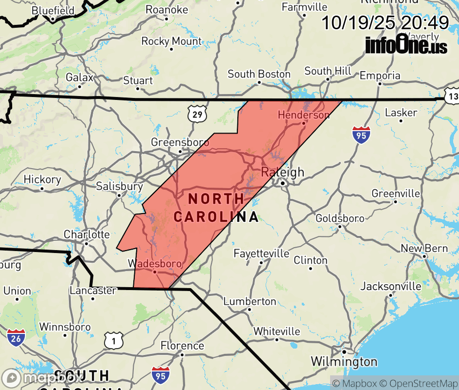 Canceled 10/19/25 9:45 PM Special Weather Statement issued October 19 at 8:45PM EDT by NWS Raleigh NC At 845 PM EDT, Doppler radar was tracking gusty showers along a line extending from near Chase City to near Mint Hill. Movement was southeast at 40 mph. HAZARD...Wind gusts up to 50 mph. SOURCE...Radar indicated. IMPACT...Gusty winds could knock down tree limbs and blow around unsecured objects. Locations impacted include... Raleigh, Durham, Cary, Chapel Hill, Burlington, Sanford, Asheboro, Albemarle, Henderson, and Graham. This includes the following highways... Interstate 85 between Mile Markers 163 and 233. Interstate 40 between Mile Markers 134 and 162, and between Mile Markers 259 and 286. Interstate 540 between Mile Markers 0 and 9. US 1 between Mile Markers 69 and 85. the Durham Freeway between Mile Markers 2 and 17. Interstate 73 between Mile Markers 26 and 88. ![]() |