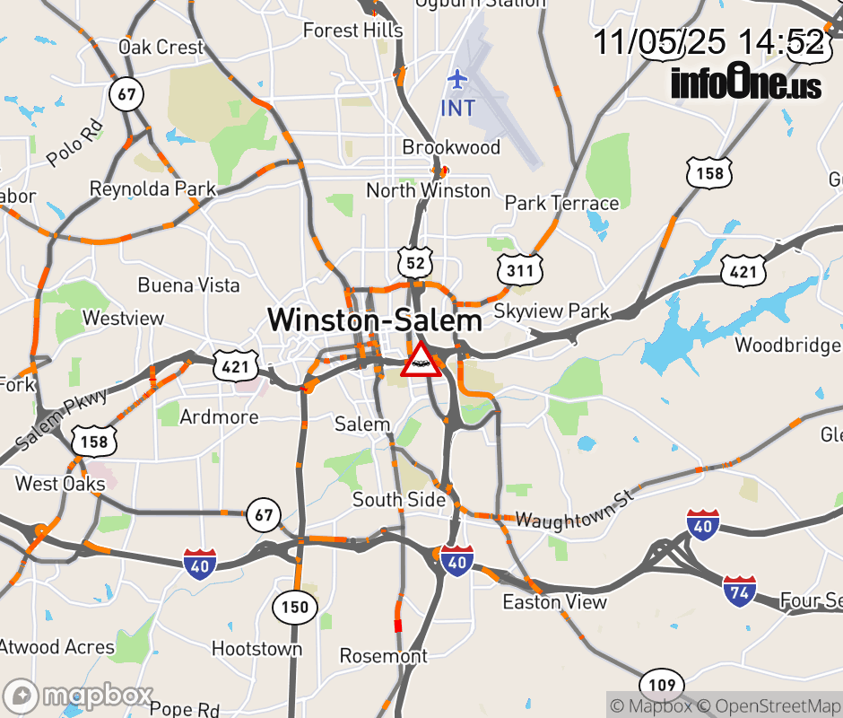 The right lane is closed at Exit 232C(US-52). ![]() |