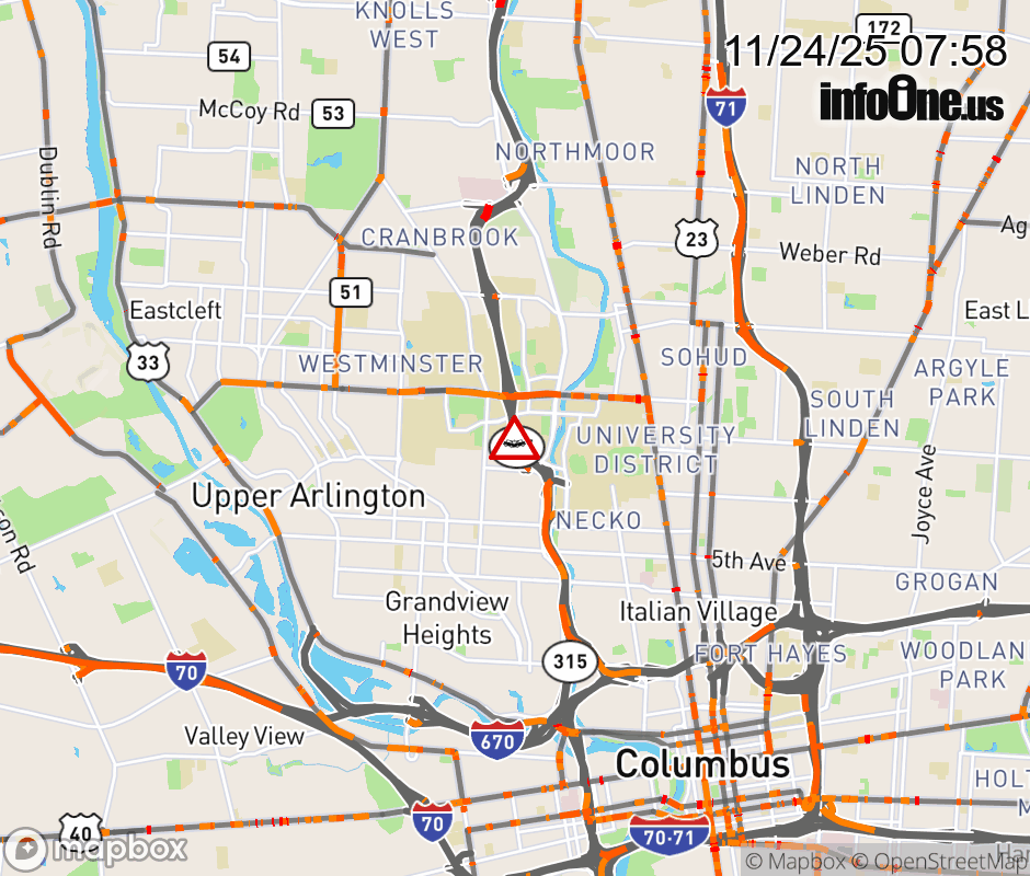The left shoulder is blocked on SR-315 North at W Lane Ave, due to a crash. ![]() |